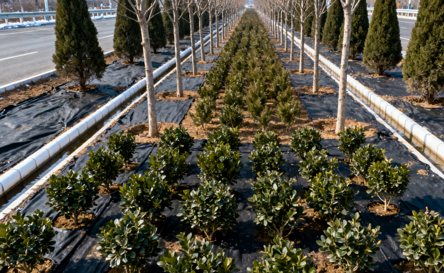 新植乔木(1-3年内)每年需进行1-2次松土和培土,以改善土壤通气性。